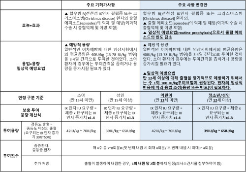 이번 허가 변경사항을 통해, 기존의 일반적인 이차예방에 대한 임상시험 평균용량인 40IU/kg(13-78 IU/kg 범위)을 3-4일 간격으로 투여하는 예방요법 뿐만 아니라 주 1회 100IU/kg 예방요법이 가능해져,1,2 환자들에게 다양한 치료 옵션을 제공할 수 있게 됐다.