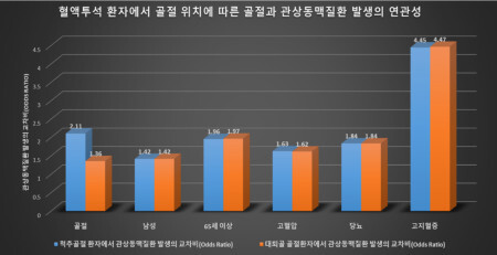 특히, 척추골절이 발생한 혈액투석 환자에서 비골절군에 비해 심근경색증이 발생할 위험도가 2배 높은 것으로 보고했다.