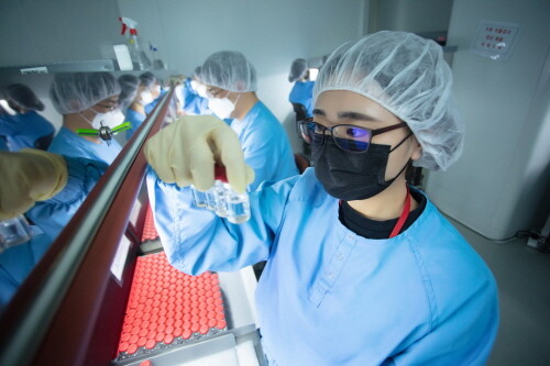 | ▲SK바이오사이언스 직원들이 안동L하우스에서 생산되는 코로나19 백신을 검수하고 있다. (사진=SK바이오사이언스 제공) |