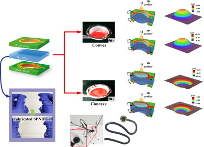 연구팀은 복합가소화(Synergistic Plasticization) 방법으로 광학적으로 투명하고 고무와 같이 탄성력이 있는 고성능의 비이온성 폴리염화비닐 고분자겔이라는 스마트 물질을 제작해 약한 전기장의 변화로도 볼록, 평면, 오목 렌즈로 형상을 다양하게 변화시켜 넓은 범위의 초점거리를 구현할 수 있게 됐다.