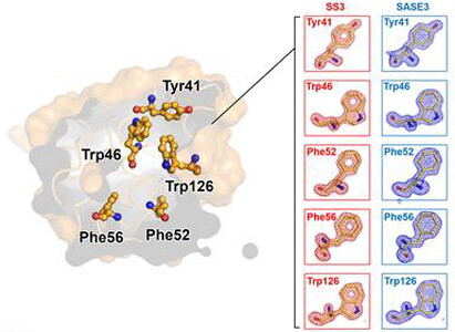 | ▲ 개선된 XFEL로 분석한 리소좀 단백질 구도(SASE와 비교) (사진= 포스텍 제공) |