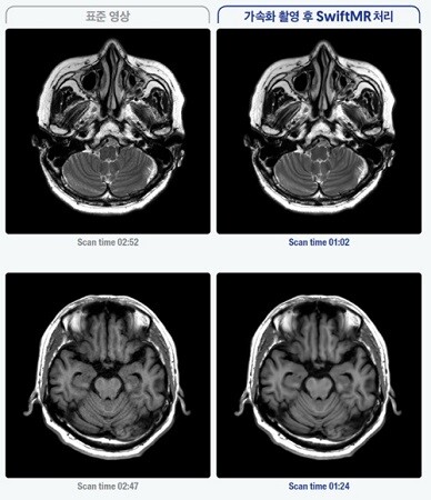 SwiftMR은 가속 촬영한 MRI 이미지를 딥러닝 기술을 기반으로 복원해 촬영시간은 최대 50% 단축하면서 영상 품질은 기존보다 향상시켜주는 소프트웨어 솔루션이다. 해당 제품은 클라우드 기반의 단독형 소프트웨어로, 별도 하드웨어 설치 없이 의료기관의 PACS(의료영상저장전송장치)와 연동 후 작동 가능하다. MRI 장비 교체, 혹은 추가 구매 없이 30~40분에 이르는 기존 MRI 촬영 시간을 단축할 수 있다. 업체는 이런 점에서 병원의 효율적 MRI 장비 운영 및 수익성 향상과 더불어 환자경험 개선에 도움을 줄 것으로 기대된다고 밝혔다.