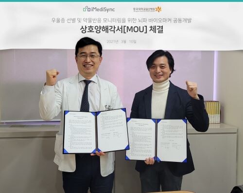 아이메디신은 지난 10일 동국대학교 일산병원 정신건강의학과 윤탁 교수와 AI 뇌파 매핑 기술을 활용한 우울증 공동연구 및 상호 협력을 위한 양해각서(MOU)를 체결했다고 17일 밝혔다.