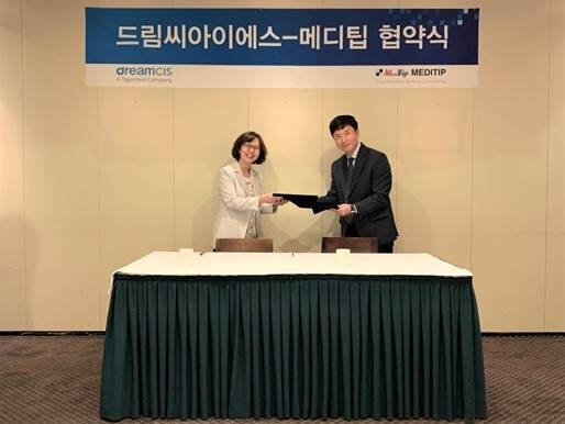 | ▲임상시험 수탁기관 드림씨아이에스가 지난 19일 글로벌 헬스케어 인허가 전문 컨설팅업체 메디팁과 업무협약을 체결했다. (사진=드림씨아이에스 제공) |