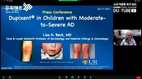 이날 기자간담회의 연자로 나선 미국 로체스터 의과대학의 리사 벡(Lisa A. Beck) 교수는 소아 중등도-중증 아토피피부염 치료에서 ‘듀피젠트’의 임상적 가치와 이번 적응증 확대 승인의 근거가 된 주요 임상 결과에 대해 소개했다.