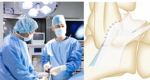 이어 “우선 내시경은 전방거비인대(ATFL)만 봉합한다고 알려진 것과 다르다. 포털 위치를 비골 부위로 변경한 올인대 봉합술을 시행하면 MBO 수술과 동일하게 전방거비인대와 종비인대에 봉합과 하부신전지대를 이용한 이중봉합이 가능하다. 또한 손상된 인대를 봉합할 때 반드시 고비용에 앵커 사용이 필수라고 하는데 앵커를 사용하지 않고도 가능하다”고 덧붙였다.