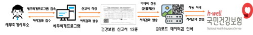 | ▲ 4대 사회보험 QR 신고 시스템 처리도 (사진= 국민건강보험공단 제공) |