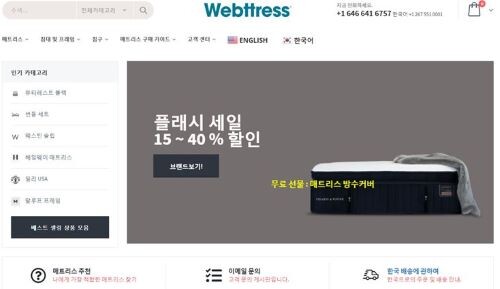 한편, '웹트리스‘는 홈페이지에 사업자 주소를 미국 뉴욕으로 표시하고 매트리스, 침대 등의 침구류를 판매하고 있으나, 홈페이지가 영어와 한국어 2개 국어를 지원하고 한국어 상담용 전화번호를 별도 게시 중으로 사실상 국내 소비자들을 주요 영업대상으로 삼고 있는 것으로 추정되고 있다.