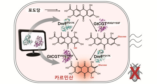 이에 KAIST 이상엽 특훈교수 연구팀은 포도당으로부터 카르민산을 생산할 수 있는 대장균 균주 개발 연구를 수행했다.