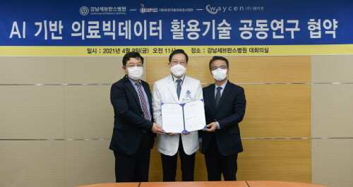 연세대 강남세브란스병원이 KAIST 유전자동의보감사업단, 의료 인공지능 전문기업 웨이센과 '인공지능(AI)기반의 의료 빅데이터 활용기술 공동연구 업무협약(MOU)'을 9일 체결했다.