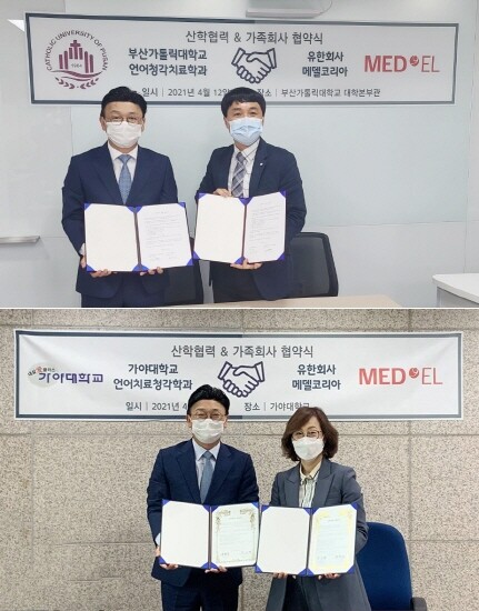 청각 임플란트 전문기업 메델코리아 부산지사는 부산가톨릭대학교, 가야대학교와 지난 12일 제반 분야에 대한 협력을 강화하고 고급 실무인력 양성을 위한 산학협력을 각각 체결했다고 15일 밝혔다.