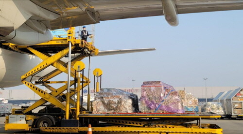 | ▲ 지난 4월 20일 스푸트니크V 백신 2차 접종 밸리데이션 뱃지 물량이 대한항공을 통해 선적되고 있다. (사진= 지엘라파 제공) |