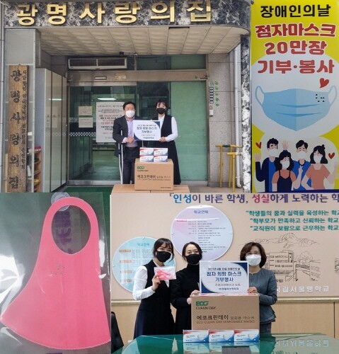 | ▲쥬얼리성형외과와 메카S&P학원이 장애인의 날을 맞아 점자 마스크 20만장을 기부했다. (사진=쥬얼리성형외과 제공) |
