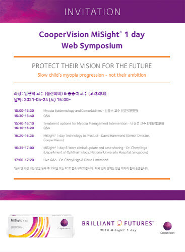 쿠퍼비전이 근시진행 완화렌즈인 ‘마이사이트 원데이’와 관련한 심포지엄을 오는 24일 개최한다.