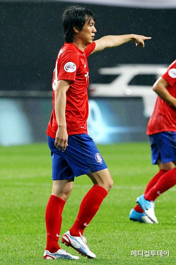 지난 5일 서울 상암 월드컵경기장에서 진행된 ‘하나은행 K리그 올스타전 2012’에서 올림픽대표팀 감독 홍명보가 ‘파넨카킥’을 선보였다.