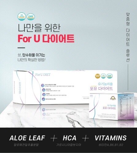 한미양행과 함께 개인 맞춤별 다이어트 건강기능식품을 선보인 유기농마을이 포유 다이어트(FOR YOU DIET)를 출시하고 75% 할인 이벤트를 마련했다고 30일 밝혔다.