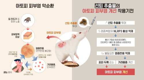 이어 임 박사 연구팀은 여러 전통의서에 기재된 선퇴의 또 다른 효능인 두드러기, 가려움증 등 피부질환 치료 효능을 현대적으로 재해석해 아토피 피부염에 적용하며 동물실험을 통한 유효성 검증 연구를 수행했다.