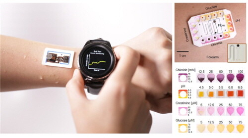 그 결과 연구팀은 땀 내 염화물, 포도당 및 크레아틴 농도, 수소이온지수(pH) 및 체적 유량을 동시에 측정하는 데 최초로 성공했다.