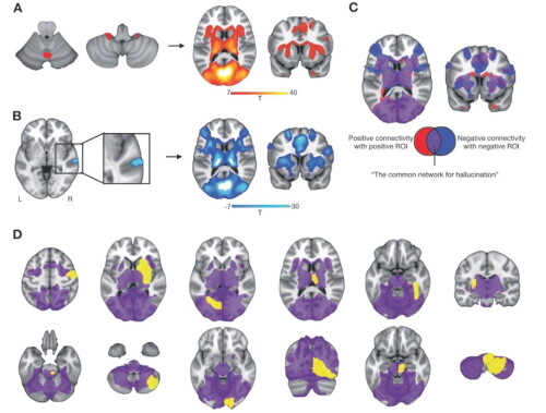 이어 교수팀은 환각이 나타나는 각기 다른 감각 영역에 따라 소뇌 및 우측 위측두엽 외에 추가적으로 다른 뇌 영역과 연결성을 보이는 것을 확인했다. 시각 환각을 유발하는 병변들은 시각 처리의 중계소로 알려져 있는 외측 슬상핵과, 청각 환각을 유발하는 병변들은 소뇌의 치상핵과 강한 연결성이 보였다.