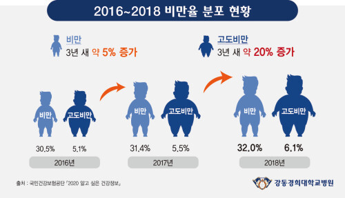 | ▲ 2016~2018년 비만율 분포 현황 (인포그래픽=강동경희대학교병원 제공) |
