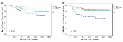연구결과 로봇수술군의 생존율과 무병생존율이 복강경 수술군이나 개복 수술군에 비해 유의하게 높았다.
