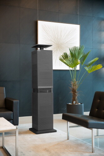 노블 공기청정기(100m2)는 제품 상단 에어팝업부가 움직이며 공기 방향을 제어해 실내 공기를 효율적으로 관리할 수 있다. 상단부는 높은 곳에 부유하는 극초미세먼지를 집중 제거하며, 하단부는 바닥 근처의 미세먼지를 효과적으로 케어한다.