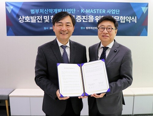 고려대학교 K-MASTER 암 정밀의료 진단·치료법 개발 사업단과 범부처신약개발사업단(이하 KDDF)은 지난 21일, 상호발전 및 협력관계 증진을 위한 업무협약을 체결하고 상호 공동 이익을 증대할 수 있도록 공동연구 및 연구정보 공유 등에 적극 협조하기로 했다고 27일 밝혔다.