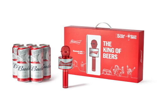 버드와이저는 버드와이저 740ml 캔맥주 5개와 블루투스 마이크 1개로 구성된 ‘마이크 패키지’를 전국 대형마트에서 이달 하순부터 판매한다.