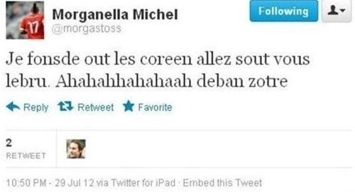이에 한국팬들이 모르가넬라의 트위터를 찾아가 그를 비난했고 모르가넬라가 “한국사람들을 전부 패주고 싶다. 다들 정신이상자다” 등 인종 차별적인 글을 게재해 논란을 일으켰다.