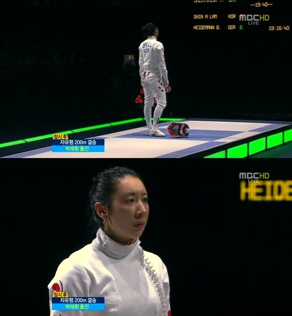 한편 지난 30일 신아람은 독일의 브리타 하이데만과의 펜싱 여자 에페 준결승에서 연장전 1초를 남기고 심판의 부당한 판정으로 패했다.