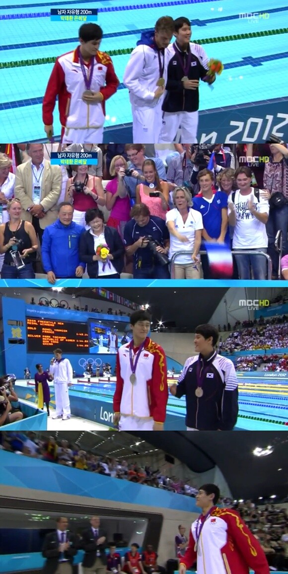 지난달 31일(한국시간) 영국 런던 아쿠아틱 센터에서 열린 ‘2012 런던올림픽’ 남자 자유형 200m 결승에서 박태환은 프랑스 야닉 아넬에 이어 중국의 쑨양과 공동 은메달을 획득했다..