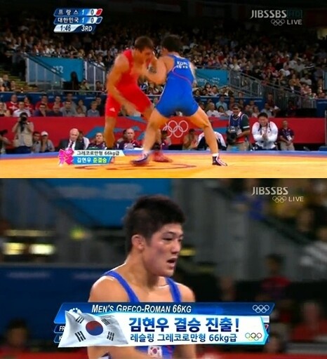 7일(한국시간) 런던 엑셀 런던 노스아레나에서 열린 레슬링 남자 그레코로만형 66㎏급 4강전에서 김현우가 스티브 귀노(26·프랑스)를 2-1로 제압하고 결승에 진출했다.