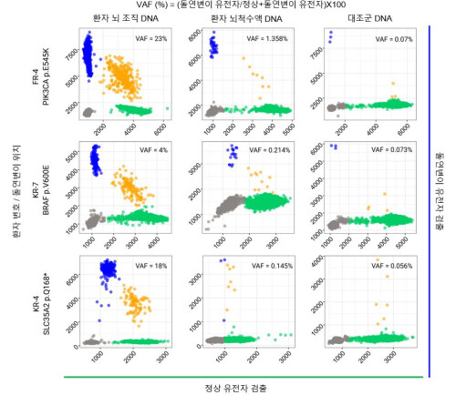 | ▲디지털 중합효소 연쇄반응을 통해 세 환자의 뇌척수액에서 발견된 병인 돌연변이 (사진=KAIST 제공) |