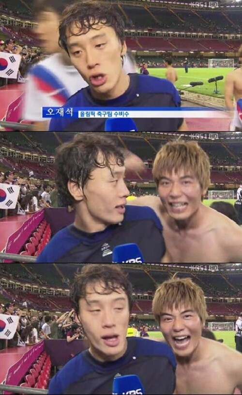 영상 속에는 오재석 선수가 “국민 여러분의 성원에 꼭 보답하려 했다”며 진지하게 인터뷰를 하고 있는 가운데 그 뒤로 기성용이 난입해 눈길을 끌었다.