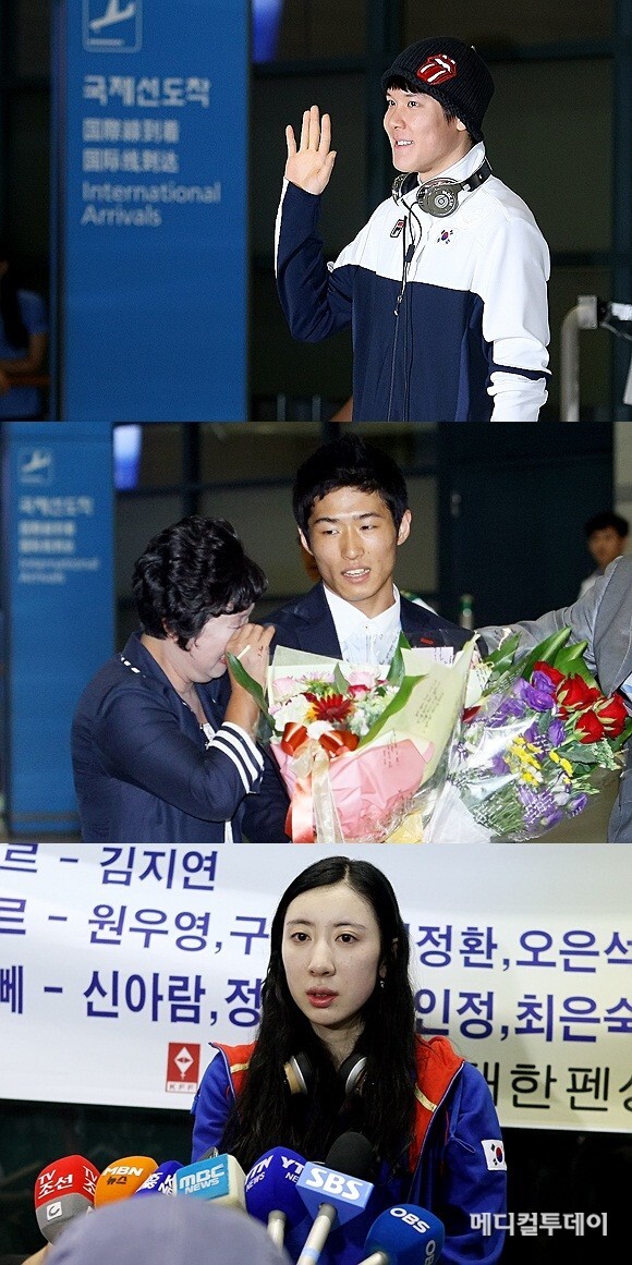 한편 양학선과 박태환의 귀국 소식에 네티즌들은 “자랑스러운 대한민국 선수들이다”, “정말 멋있다”, “양학선과 박태환 귀국했군. 정말 멋진 메달리스트들”, “신아람 정말 당신은 자랑스러운 선수입니다” 등의 반응을 보였다.