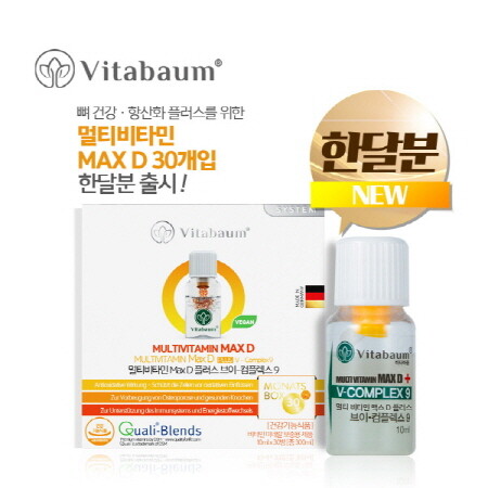비타바움에서 새롭게 출시된 멀티비타민 맥스D는 비타민D 결핍 환자에게 권고되는 1000IU 이상의 비타민D를 함유하고 있는데, 흡수율이 높은 활성형 비타민D3를 사용했을 뿐만 아니라 주스처럼 마시는 제형이기 때문에 보다 효과적으로 체내의 비타민D 농도를 높일 수 있다. 또한 비타민D 뿐만 아니라 항산화, 피로 회복에 효과적인 비타민과 미네랄 9종을 모두 함유해 남녀노소 누구나 하루 1병으로 건강관리를 할 수 있다.