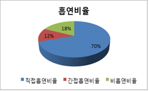 직-간접 흡연 경험이 전혀 없는 환자는 18.7%인 291명이었고 이 가운데 남자는 75명, 여자는 216명이었다.