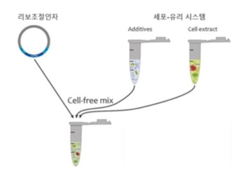| ▲구제역 바이러스 진단을 위한 리보조절인자와 리포트 단백질을 발현하기 위한 세포-유리 시스템에 대한 모식도 (사진=안전성평가연구소 제공) |