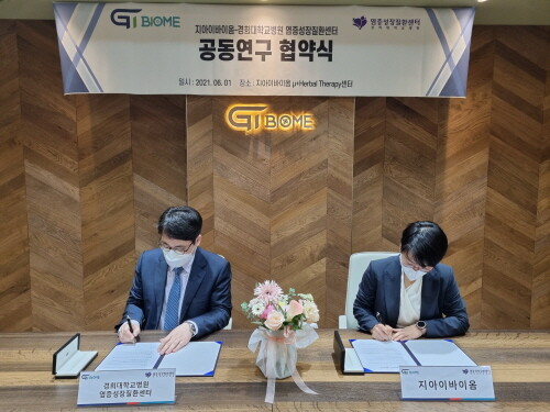 마이크로바이옴 신약개발기업 지아이바이옴 과 경희대학교병원 염증성장질환센터가 염증성장질환 치료제 개발 및 임상시험 협력을 위한 업무협약(MOU)을 체결했다.