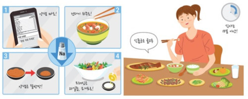 아울러, ‘나트륨 줄인 한 끼 식단‘은 가정에서 식사를 준비할 때 참고할 수 있도록 제작한 식단 10가지와 요리 동영상 3가지다. 한 끼 식단은 밥‧국‧반찬(3종)을 기본으로 나트륨 섭취를 줄일 수 있는 조합을 제시했다.