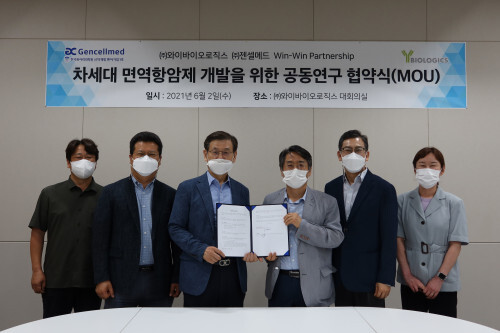 | ▲와이바이오로직스와 항젠셀메드는 차세대 면역항암제 신약 공동연구개발 위한 상호협력을 하고자 양해각서(MOU)를 체결했다 (사진=와이바이오로직스 제공) |