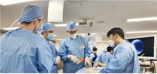 | ▲내시경 수술의 방법을 전수해 주고 있는 하지수 원장 (사진=서재곤링커병원 제공) |