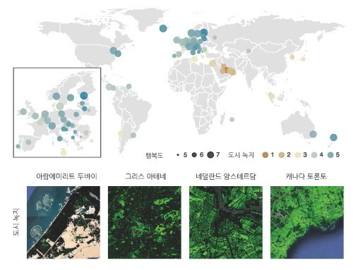 공원, 정원, 천변 등 도시 속 녹지 공간은 미적 즐거움은 물론 신체활동 및 사회적 상호작용 촉진 등 육체와 건강에 유익한 영향을 준다. 도심 녹지와 시민 행복간의 상관관계를 규명하기 위한 많은 연구가 이뤄졌지만, 지금까지는 주로 일부 선진국을 대상으로만 연구가 진행됐다.