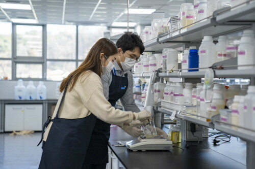 | ▲ 한국콜마 종합기술원에서 연구원들이 연구를 진행하고 있다. (사진= 한국콜마 제공) |