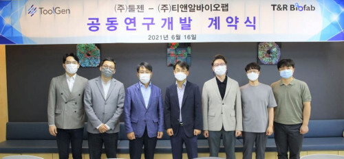 | ▲툴젠은 티앤알바이오팹과 면역 거부 극복 유도만능줄기세포 개발을 위한 공동연구계약을 체결했다 (사진=툴젠 제공) |