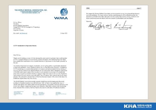 세계의사회가 현재 국내에서 논란이 되고 있는 수술실 CCTV 설치에 대해 ‘전체주의 정권’의 성격을 띄는 해결책이라고 비판하며 CCTV 설치를 반대하는 내용의 서한을 대한의사협회에 전달했다.