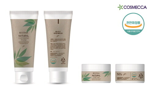 | ▲천연화장품 인증 2개 품목 레스티나 내추럴크림, 내추럴 클렌징폼 (사진=코스메카코리아 제공) |