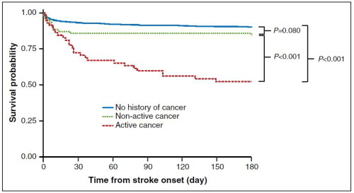 특히 활성 암의 존재는 치료 후 6개월 기준 사망과 관련해 3.973배 더 나쁜 인자로 작용했다. 그러나 암 환자의 뇌경색이 암이 아닌 다른 원인에 의해 발생한 경우 재관류 치료의 예후는 긍정적으로 나타났다.