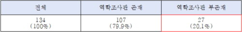 감염병예방법에 따라 인구 10만명 이상의 시군구에는 필수적으로 1명 이상의 역학조사관을 두어야만 한다. 하지만 전국 시군구 중 인구 10만명 이상 156개 시군구 중 역학조사관을 두지 않은 시군구는 27개(20%)에 달했다.