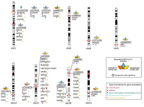 | ▲코로나19 감염과 중증도에 연관이 있는 유전자와 염색체 상 위치 (사진=강북삼성병원 제공) |
